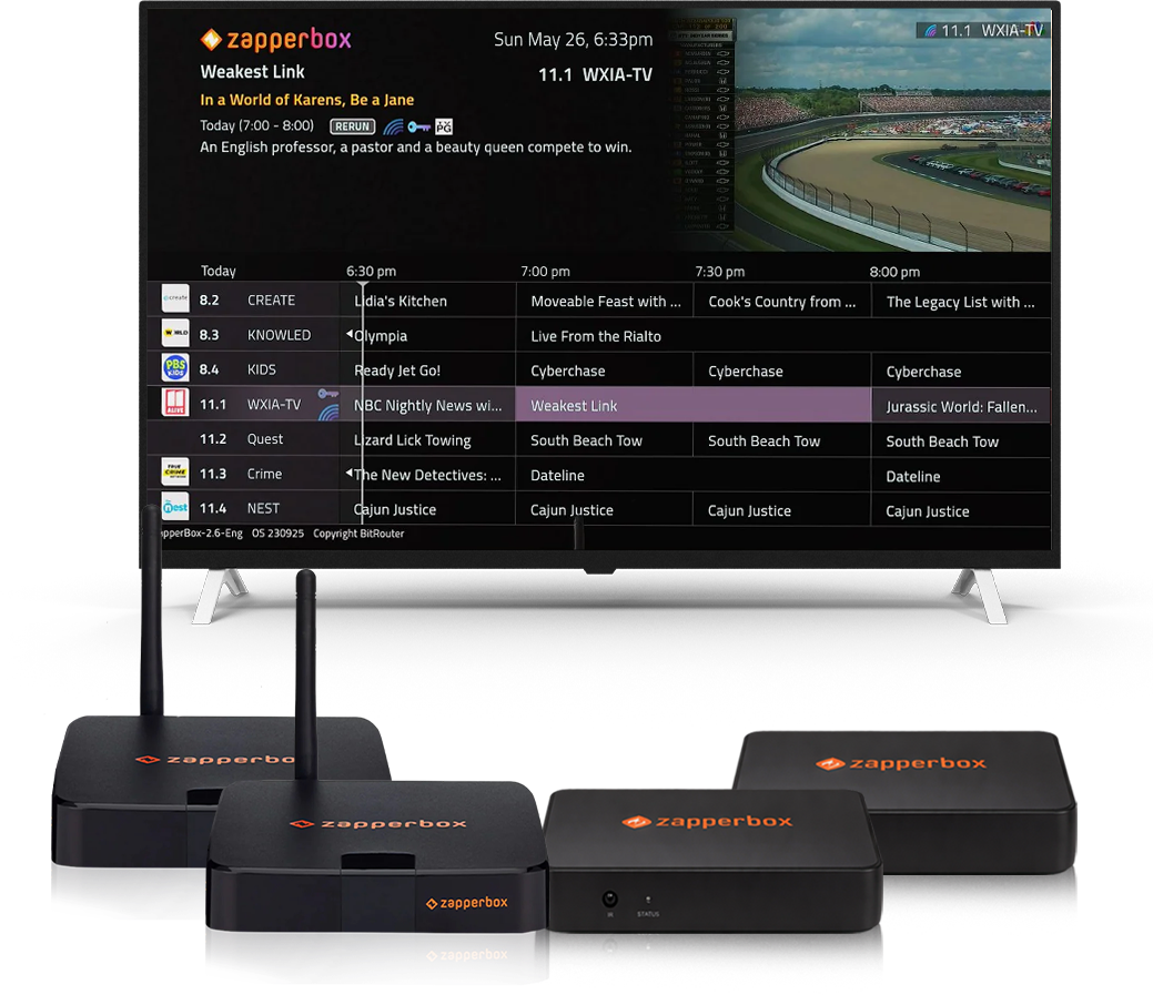 ZapperBox brings all the features of ATSC 3.0 to your TV - 4K resolution, High Dynamic Range picture quality, and Dolby® AC 4 audio.