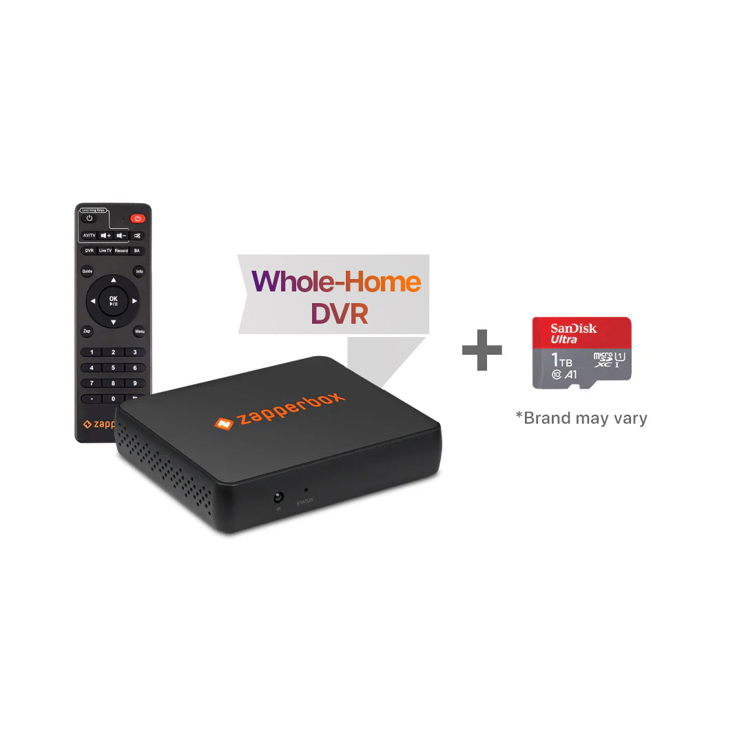 ZapperBox single tuner 4K over-the-air, whole-home DVR that allows you to get high-resolution local TV programming without a monthly subscription. Most of the programs you watch are local broadcast channels like ABC, CBS, FOX, NBC, PBS, and The CW. You don’t need to pay hundreds of dollars a month to watch and record the shows you love.